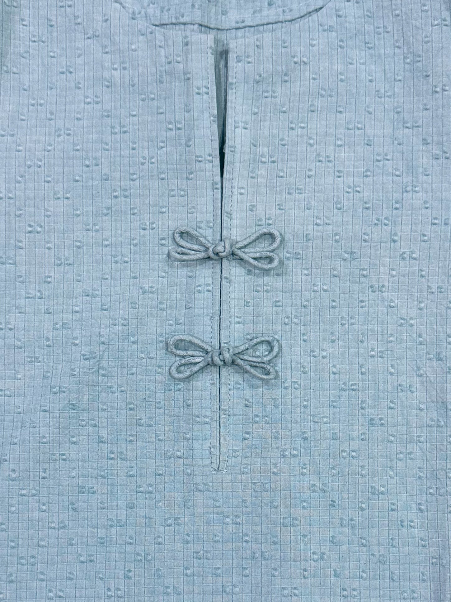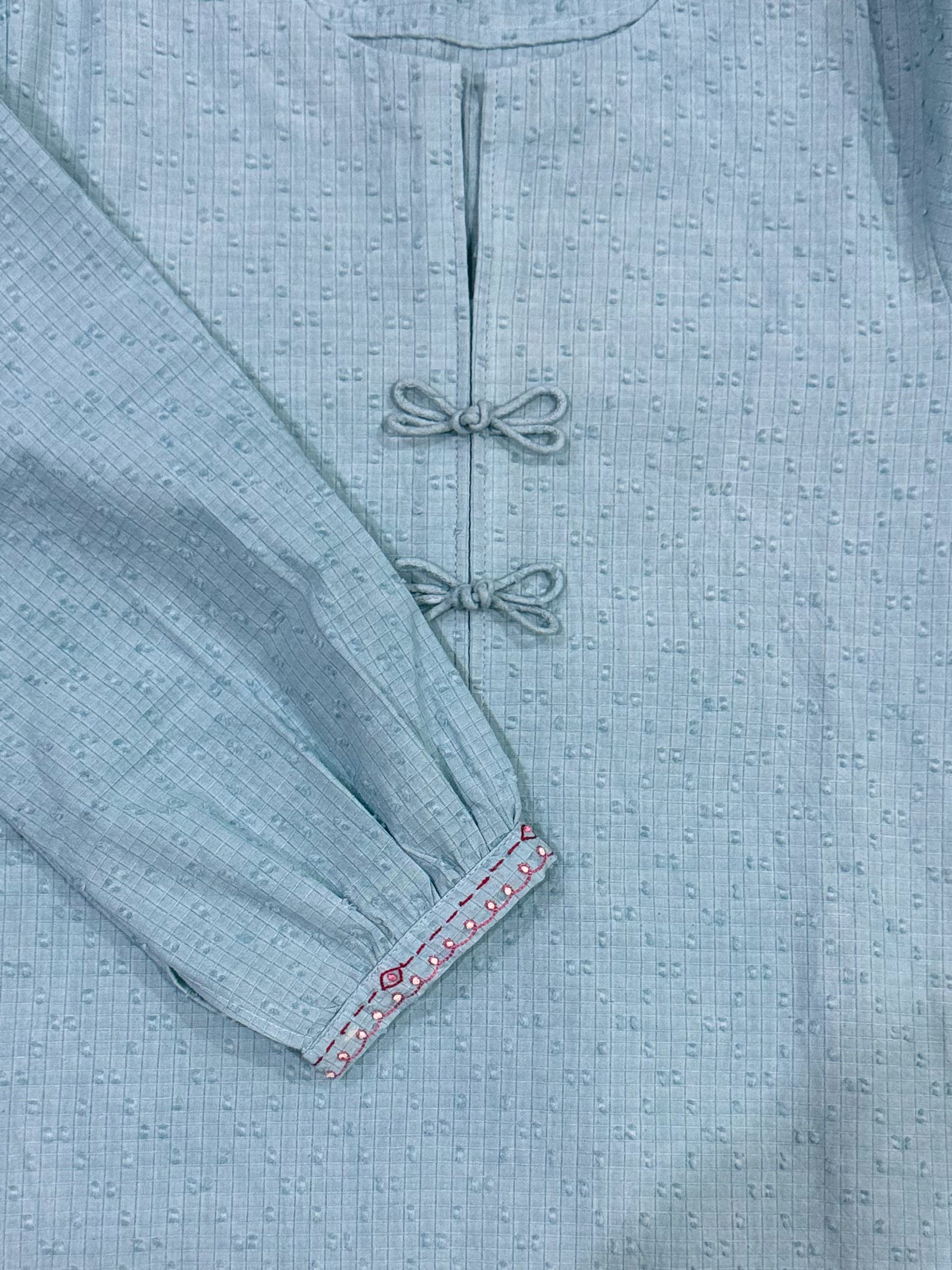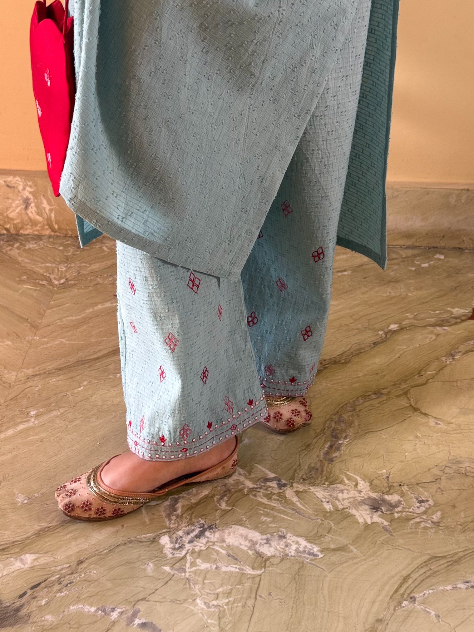 Textured cotton co-ord set with loop closure detail and hand embroidered Wide Pants.
